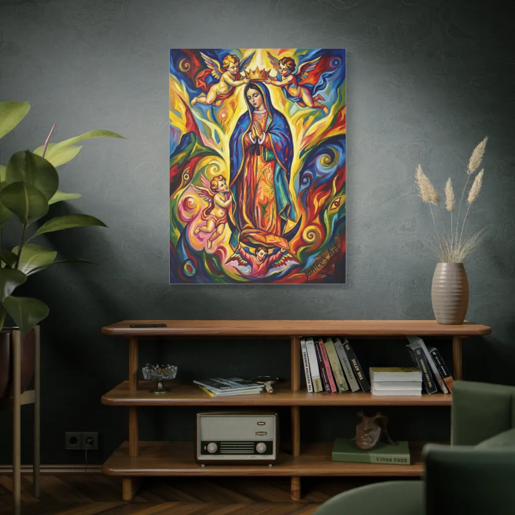 This piece radiates a profoundly serene yet playful wonder. Its divine colors inspire daily joy and a comforting sense of spiritual connection, enveloping your space in an atmosphere of gentle reverence and uplifting peace.
