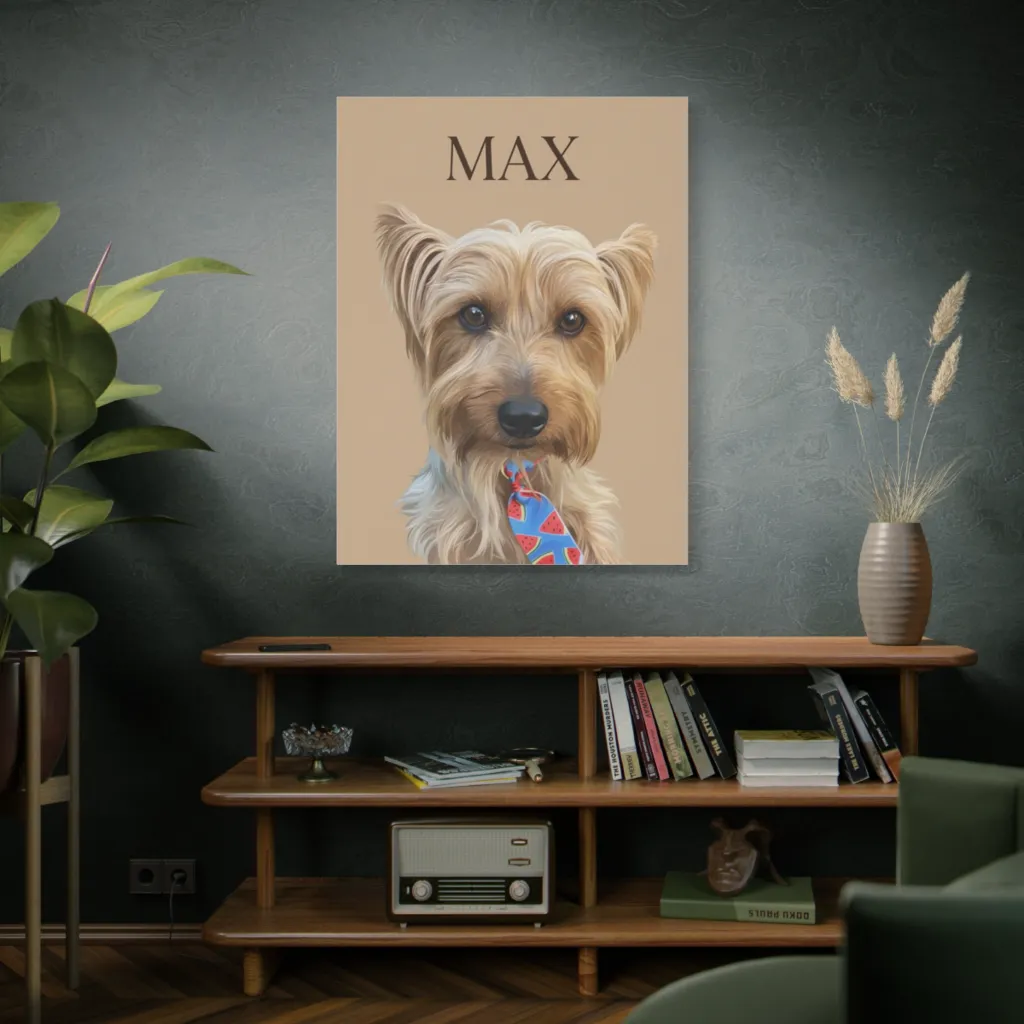 Max’s vibrant charm belongs above a raw oak console in a sun-drenched reading nook. Complement with brushed brass accents and linen textures for sophisticated whimsy. Truly chic!