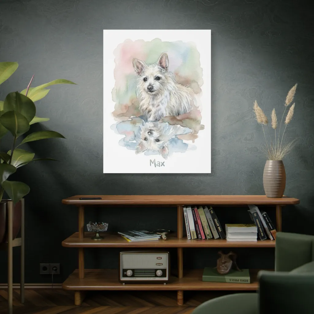 Max's curious gaze and shaggy charm perfectly encapsulate his gentle, pondering spirit. This portrait beautifully reveals a soulful personality, making Max feel truly special and deeply felt.