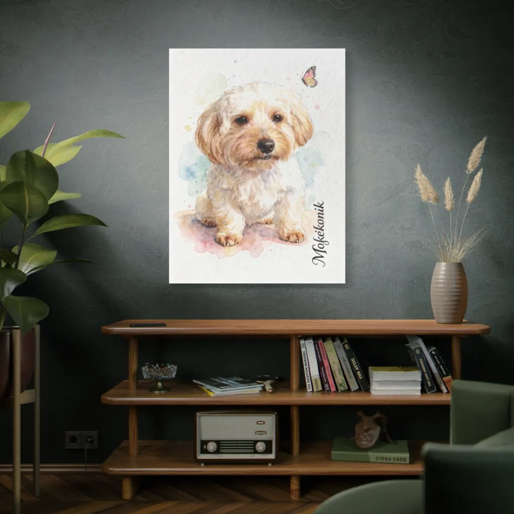 Mokeikonik's playful innocence shines through, beautifully captured in watercolor. The gentle expression and fluffy detail perfectly reveal their charming, unique spirit, making this a heartwarming portrait that truly celebrates their soul.