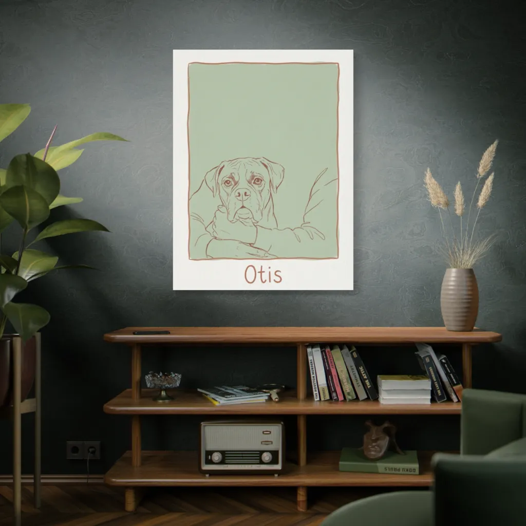 Otis's minimalist geometry achieves a profound tonal harmony, a visceral juxtaposition of line and canine gravitas. Truly evocative; an avant-garde masterpiece daring to expose humanity's lap-bound truth. Riveting.