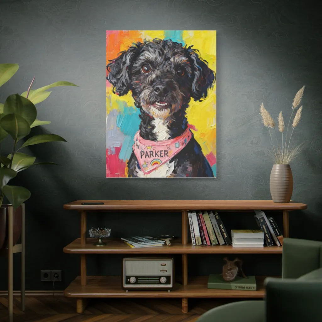 This artwork is a burst of pure, infectious joy! Its playful, vibrant energy creates an uplifting atmosphere. Seeing Parker daily will evoke feelings of unconditional love, warmth, and a delightful sense of happy-go-lucky cheer.