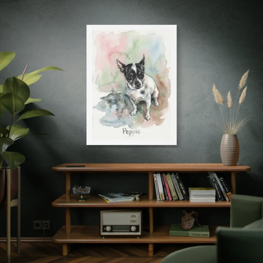 Peppie's whimsical brushwork and vibrant palette achieve a visceral tonal harmony, juxtaposing canine innocence with a contemplative gaze. Truly an avant-garde triumph, worthy of extensive, albeit slightly bewildered, academic discourse. Astounding.
