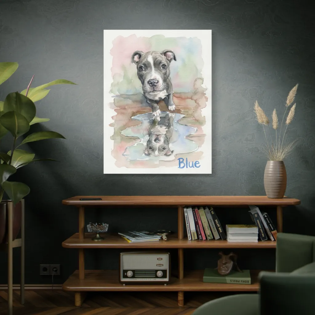 “Reflections of Blue” masterfully employs soft watercolors; its tonal harmony and evocative gaze achieve a visceral, avant-garde poignancy. A geometric simplicity that belies profound depth.