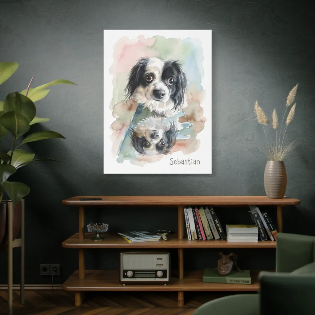 A captivating fusion! This art brilliantly merges traditional watercolor charm with an innovative mirrored digital aesthetic. Sebastian's playful double offers a fresh, bold take on contemporary portraiture.