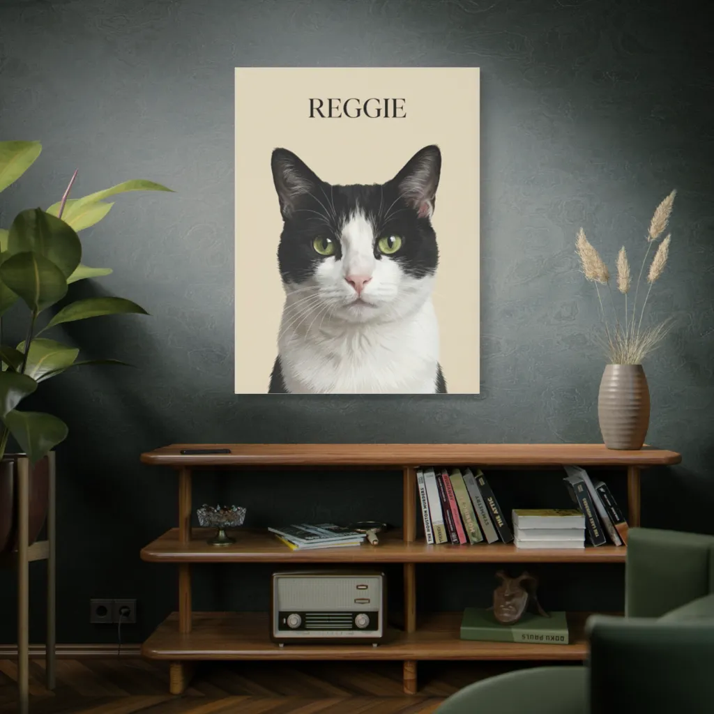 This work commands immediate attention. Reggie's regal presence and classic composition evoke a modern Da Vinci portrait, with his piercing gaze holding the viewer captive. Truly exhibition-worthy. A profound pet portrait.