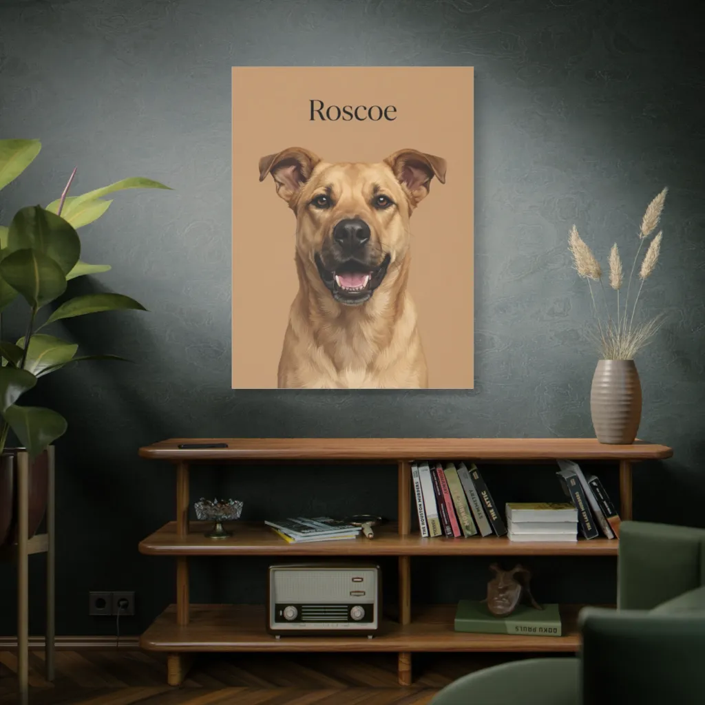 Roscoe's portrait possesses an undeniable presence. Its dynamic composition and infectious charisma echo contemporary pop art sensibilities, commanding attention with its jubilant, unadulterated canine spirit. An exceptional exhibition piece.