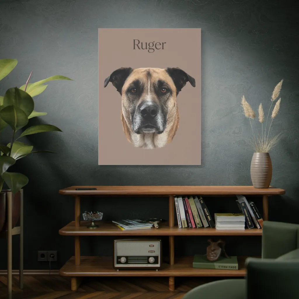 This hyper-realistic portrait is a stunning blend of traditional dignity and contemporary digital mastery. Ruger's intense focus is a bold, innovative take on pet portraiture, pushing boundaries with cutting-edge precision.