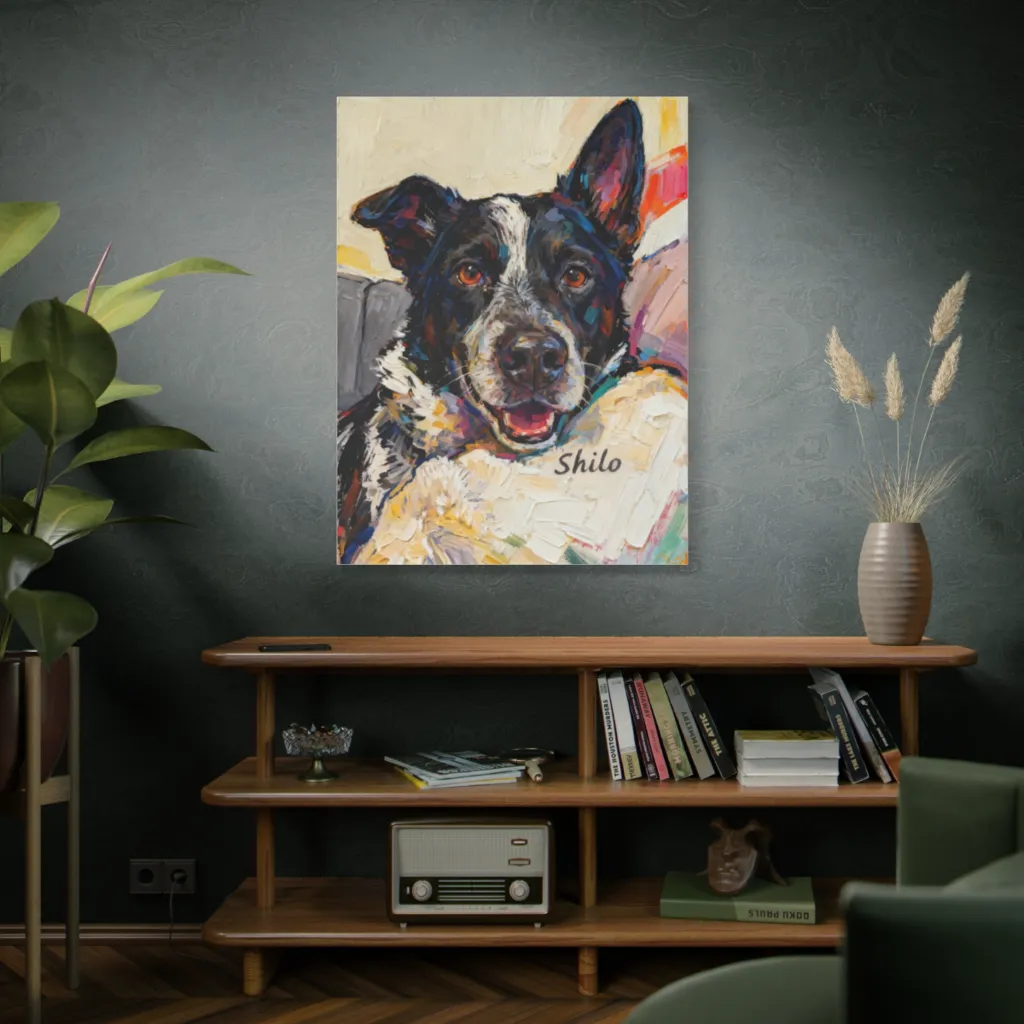 Shilo's impasto portrait, a symphony of vibrant brushwork, achieves a truly evocative tonal harmony. This visceral display of canine joy, with its avant-garde geometric flair, begs comparison to masterpieces.