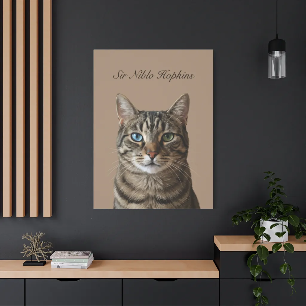 This portrait exudes serene power and playful curiosity. Sir Niblo's gaze brings a delightful, comforting mystery. Daily viewing would infuse your space with whimsical charm and a quietly confident, loving presence.