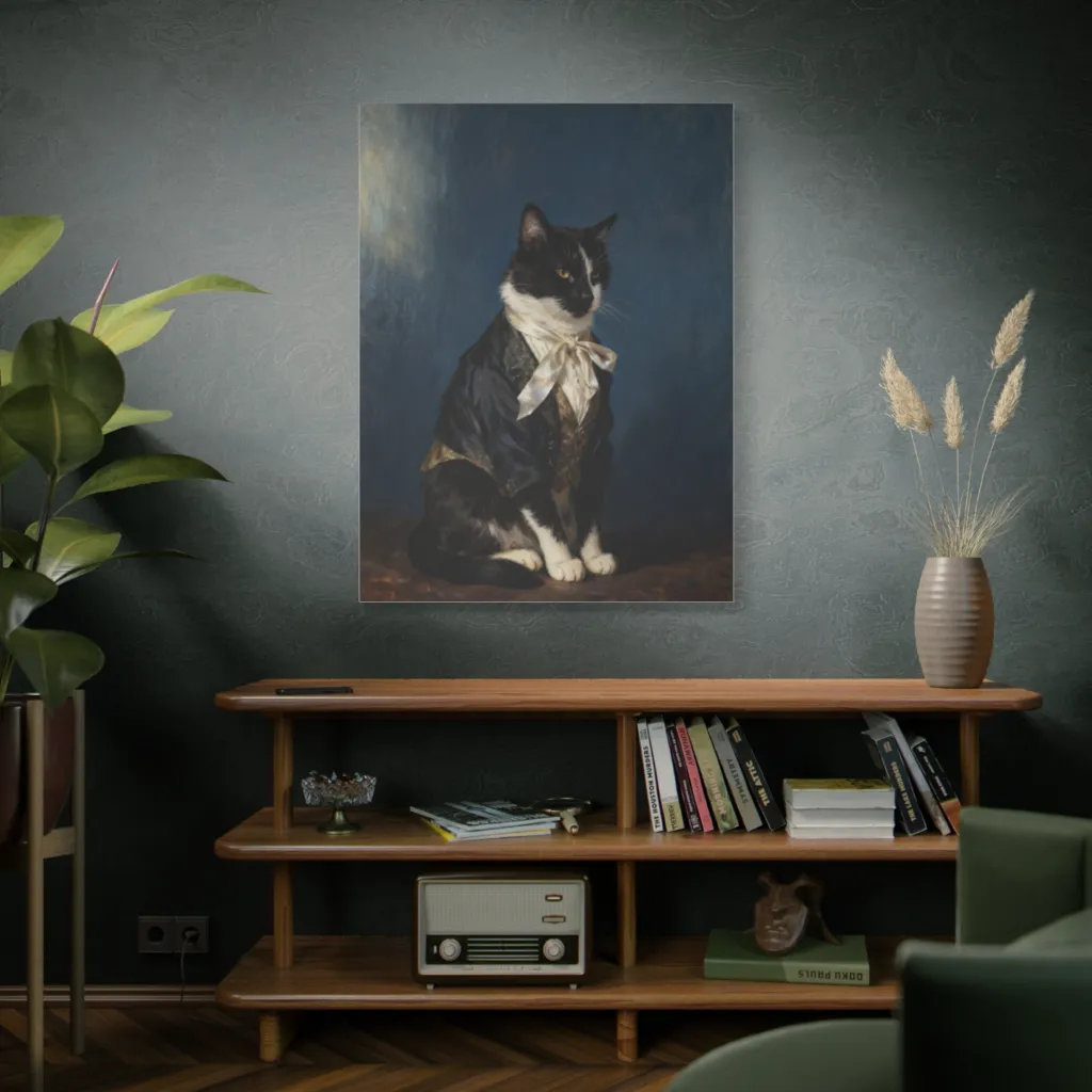 This portrait radiates a playful, regal nostalgia, brimming with sophisticated charm. Daily, it would infuse your space with serene warmth and a delightful sense of elegant whimsy, reminding you of life's refined pleasures.