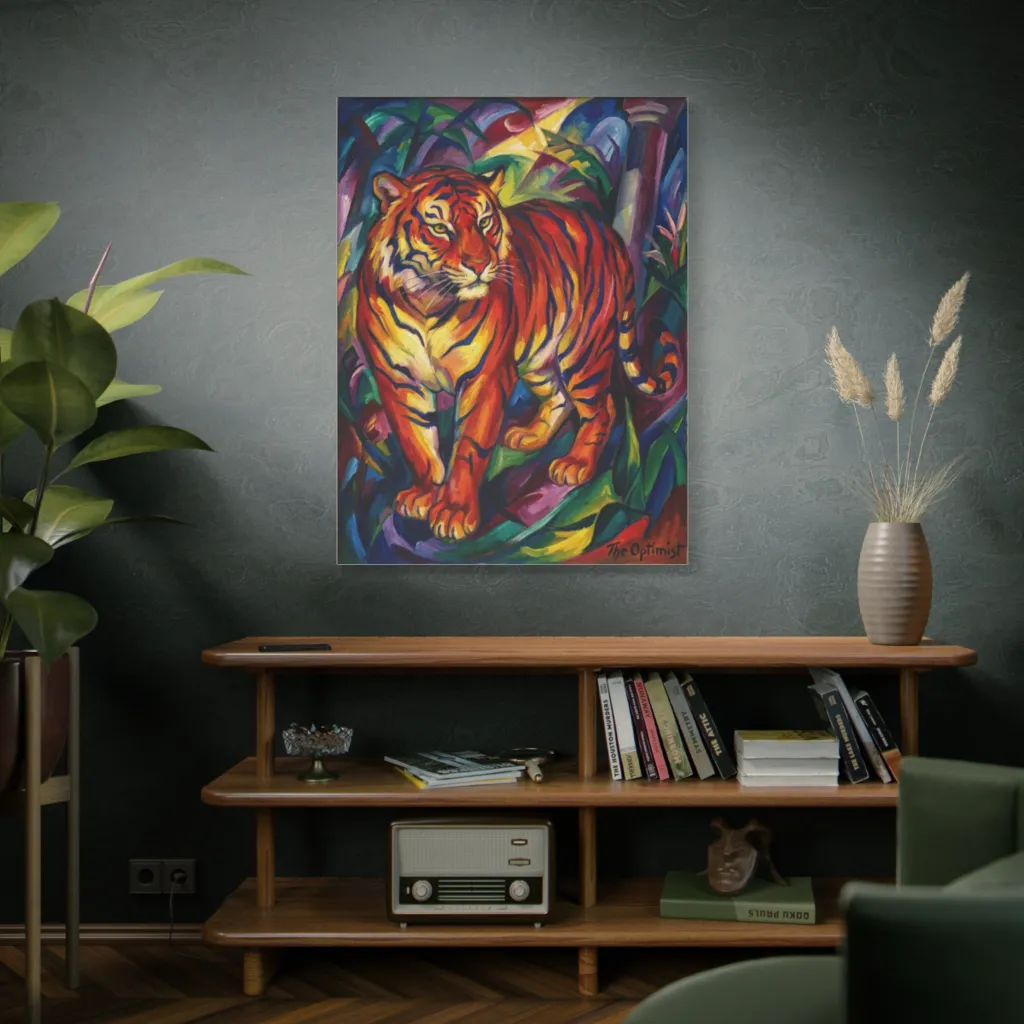 This Fauvist tiger is uniquely captivating. Its vibrant energy ensures lasting appeal and high conversation value. A sophisticated, emotionally impactful piece, The Optimist's Jungle Dream is a treasured investment for any discerning collection.