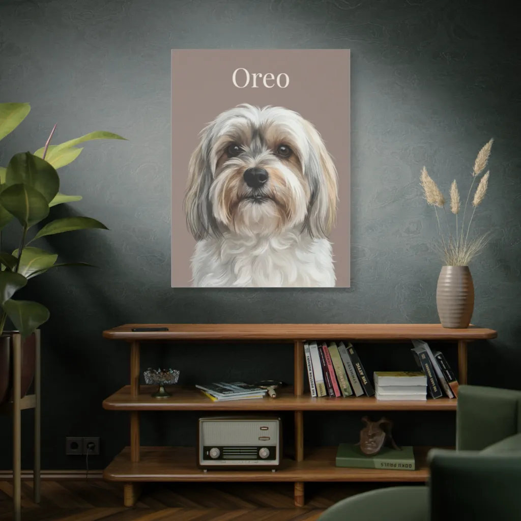 This piece radiates gentle warmth and serene comfort. Seeing Oreo's soulful gaze daily would evoke quiet joy, a feeling of deep connection and enduring peace, truly heartwarming.