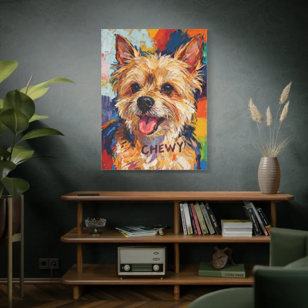"The Radiant Chewy" vibrantly captures Chewy's uncontainable joy. Every "chewy" impasto stroke perfectly expresses his unique, happy spirit and radiating personality. Truly special.