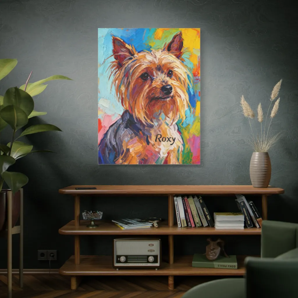 Vibrant impasto strokes capture a charming Yorkie portrait, bursting with colorful zest and undeniable, playful personality.