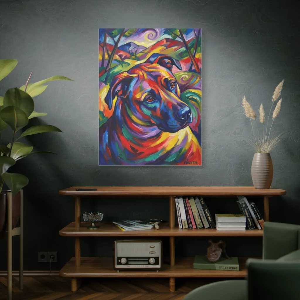 "The Resplendent Warren" presents a fascinating Fauvist kaleidoscope. Its visceral brushwork and audacious chromatic juxtaposition evoke an avant-garde canine gravitas. Truly, a masterpiece of whimsical dog-art deserving of the Louvre.