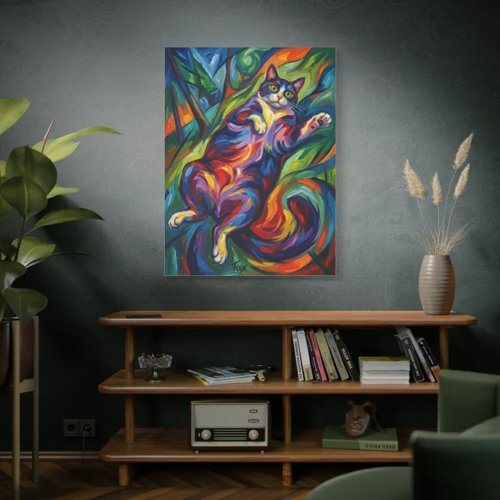 This piece radiates pure, unadulterated joy and whimsy! Tux's rainbow purrs create an uplifting, playful vibe. Daily viewing will infuse your home with delightful energy, sparking smiles and lighthearted enchantment.