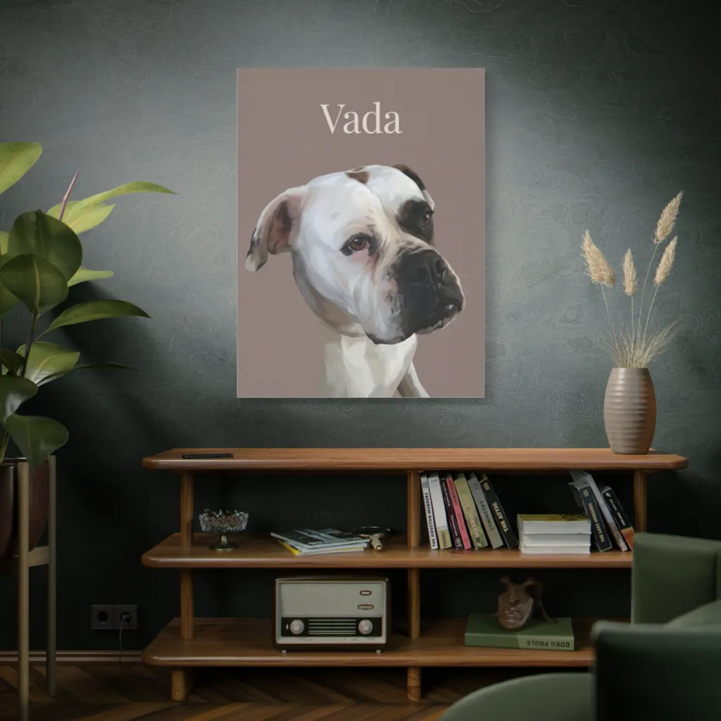 Vada's soulful gaze is beautifully rendered, revealing her thoughtful, distinguished spirit. This portrait masterfully captures her unique canine connoisseur personality, making her truly special and deeply felt.