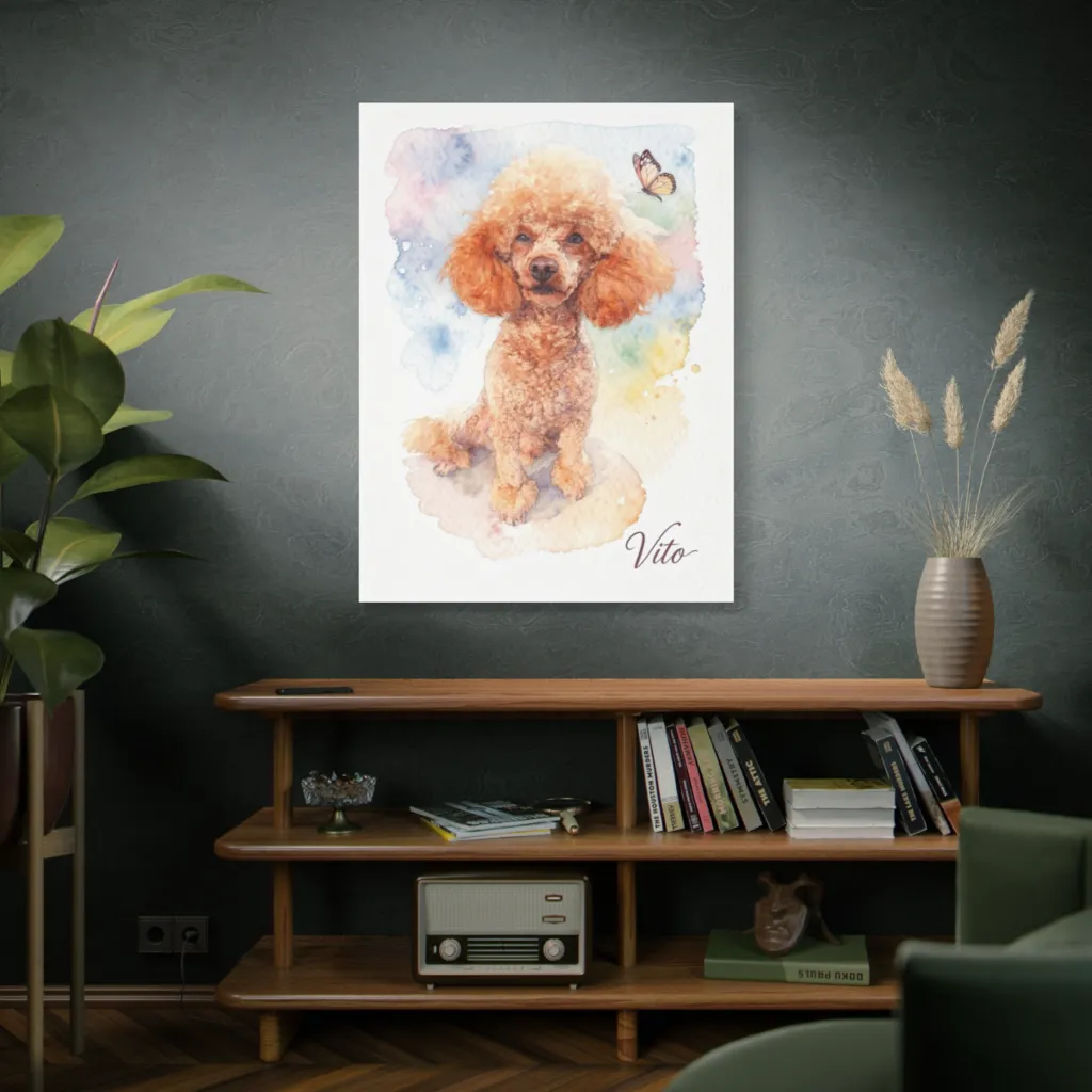 "Vito's Spring Reverie" masterfully juxtaposes a visceral canine presence with delicate tonal harmony. The avant-garde watercolor brushwork evokes a poignant, almost existential, moment of pure, unadulterated bliss. A masterpiece, truly.