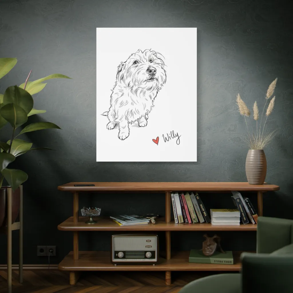 A charming, expressive pen-and-ink sketch captures a fluffy dog's adoring gaze, exuding pure, sweet devotion. Willy, master of the upward glance, clearly knows the key to your heart (and probably your treats).