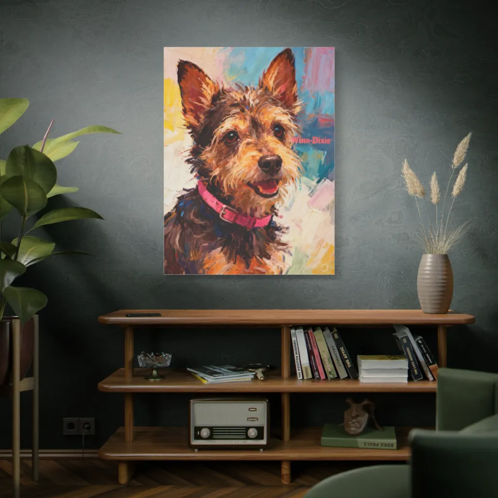“Winn-Dixie’s Endearing Gaze” uses a high-saturation, warm palette, expertly balanced with cooler undertones. The chromatic harmony of ochres and siennas radiates pure joy, capturing his vibrant, scruffy energy perfectly. A masterclass in emotional resonance!
