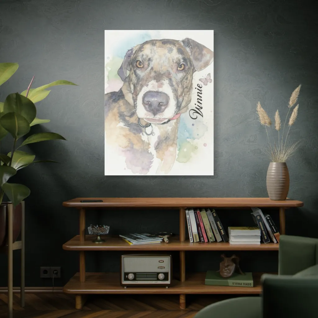 This watercolor achieves masterful tonal harmony. Winnie's visceral, discerning gaze, adrift in evocative pastel washes, creates a sublime juxtaposition. Frankly, it's almost too profound for a pet portrait. A triumph.