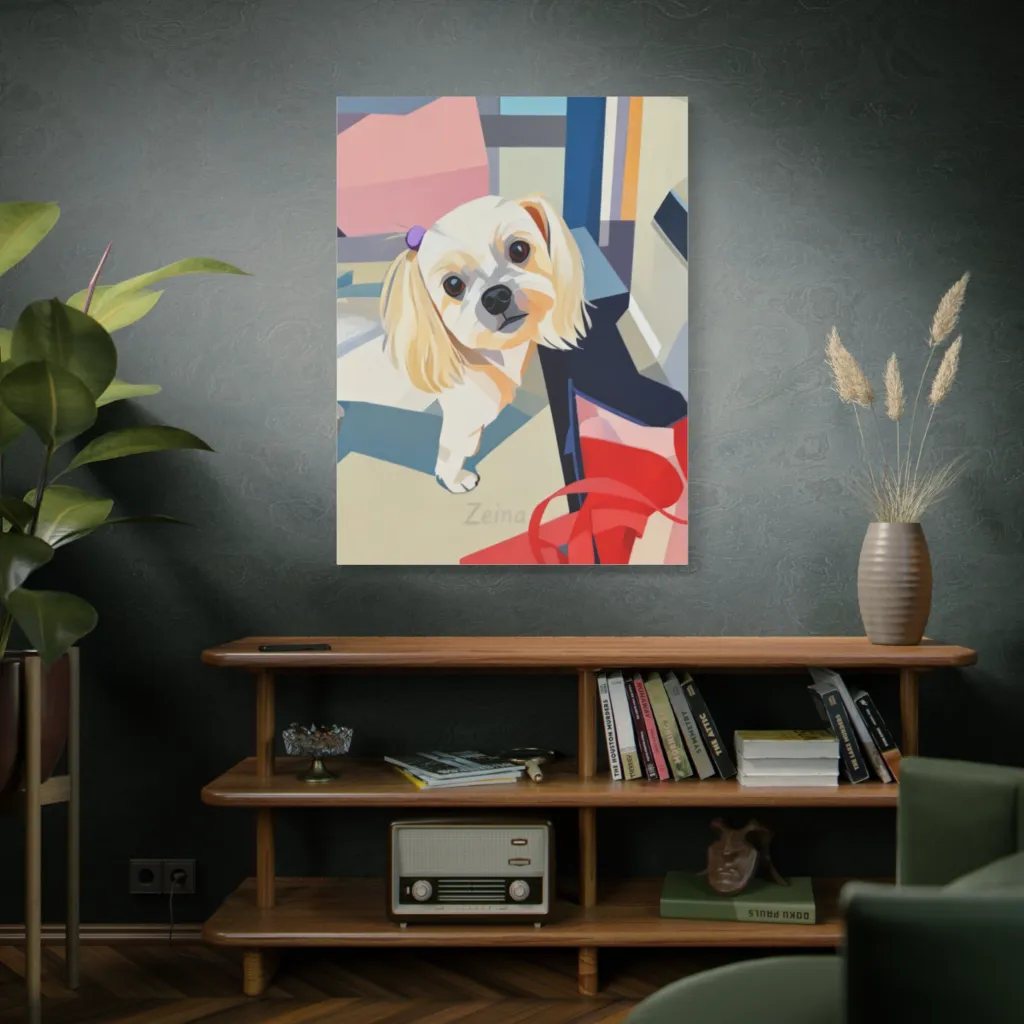 Zeina's innocent, big eyes, even in this cubist style, brilliantly capture her gentle soul. Her fluffy charm and stance perfectly reveal a unique, loving character. Truly special.